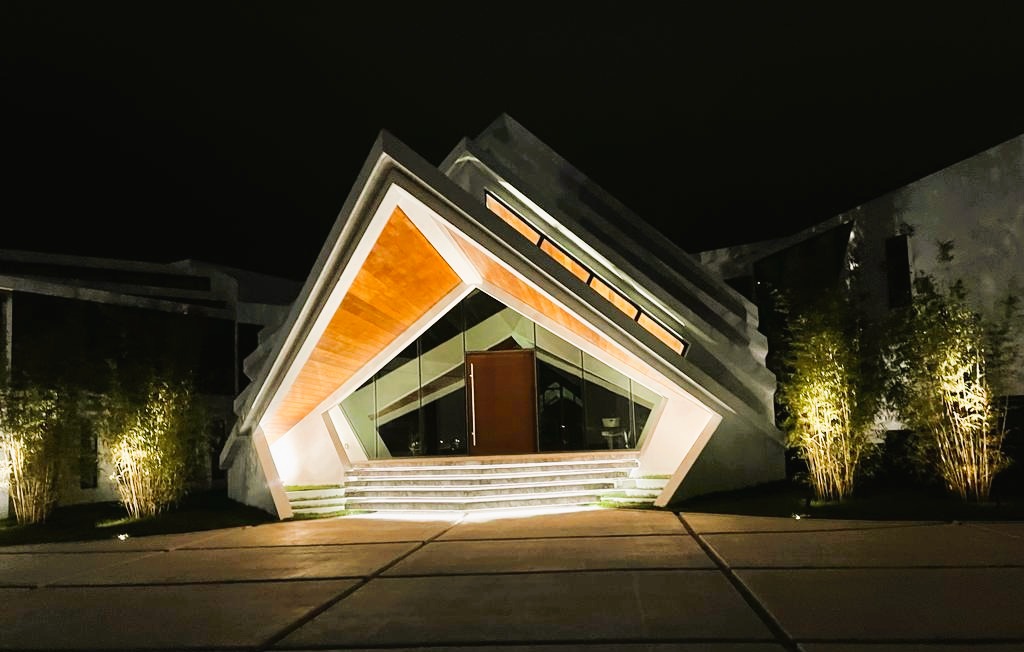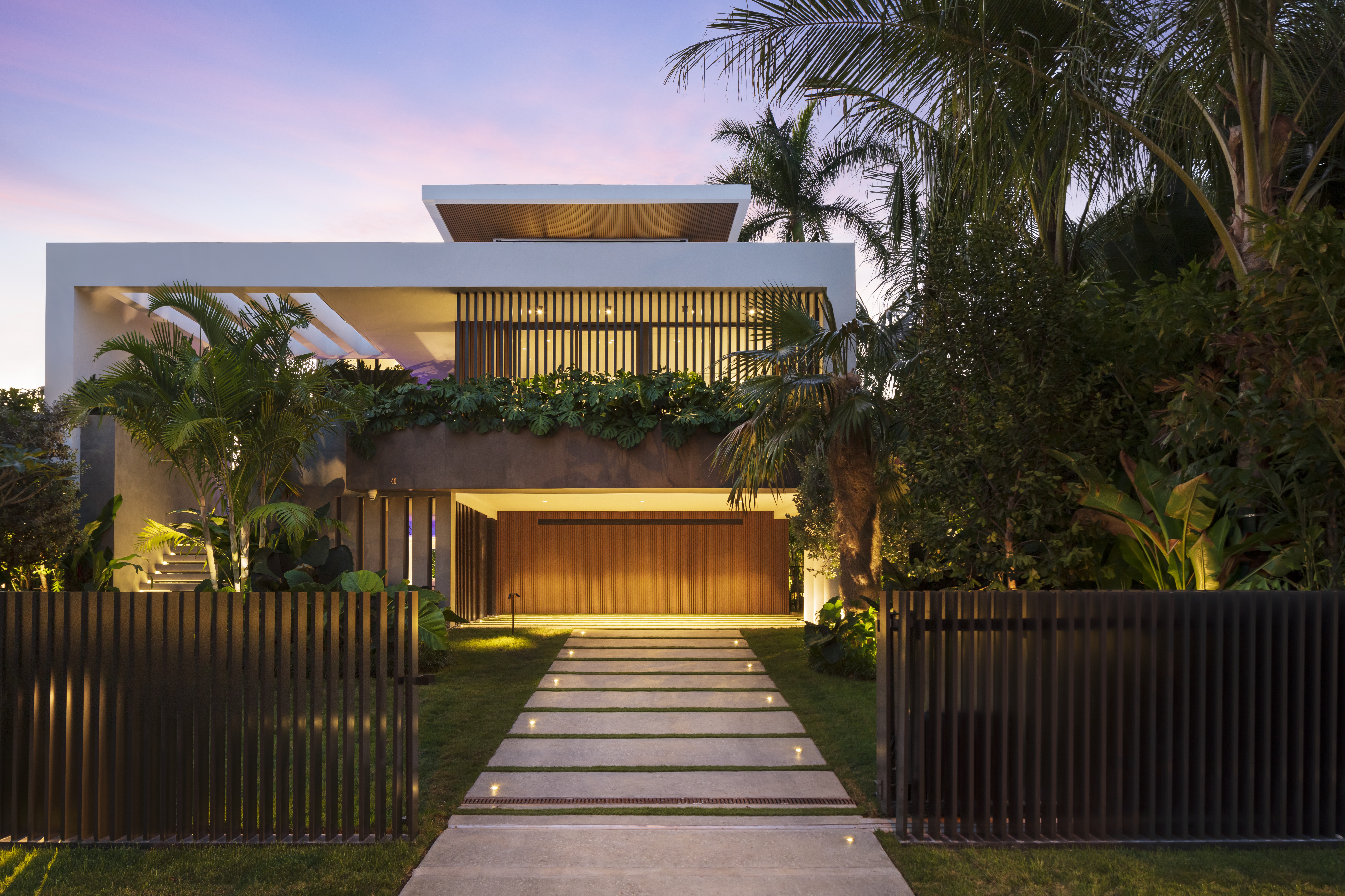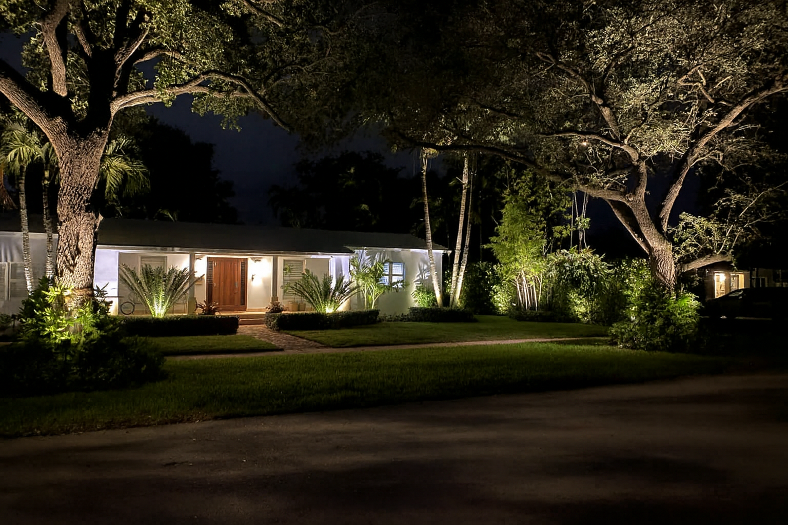 Escape to a sensory oasis with beautiful landscape lighting and landscape audio.